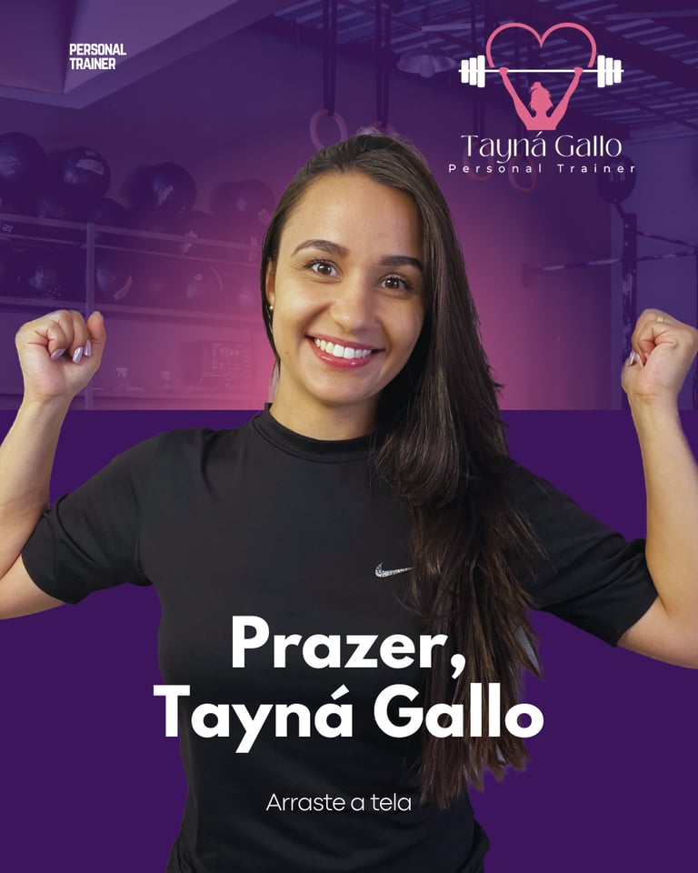 Sou Tayná, Personal Trainer formada pela UEMG, atuando há 12 anos na área e mãe de três. Vivo a rotina real da maternidade, incluindo a experiência como mãe atípica, e transformei essa vivência em propósito. Hoje, ajudo mulheres e mães com rotina corrida a conquistarem mais força, energia e autoestima por meio de treinos personalizados, flexíveis e adaptados à vida real.